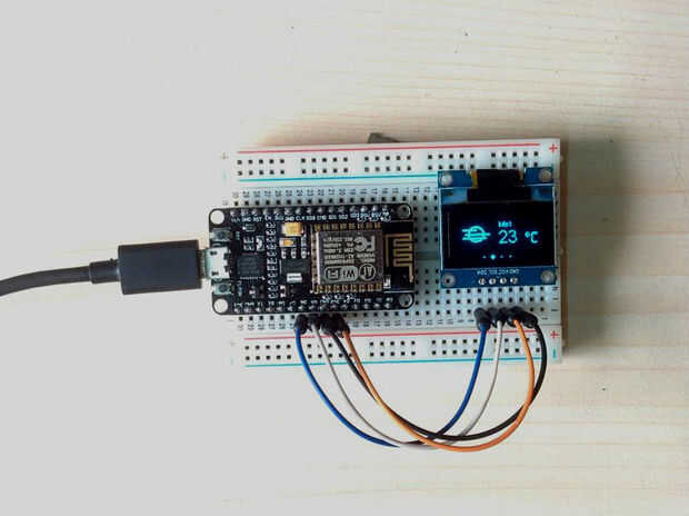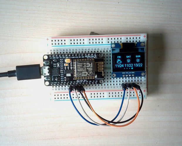 Si te interesa un no hacer el circuito utilizando un módulo ESP8266-01, esta es una alternativa para usted. Puede hacer el mismo Widget de tiempo mediante el uso de un tablero de nodo MCU. NodeMCU es una plataforma de Internet de código abierto. Incluye el firmware que se ejecuta en el ESP8266 Wi-Fi cos y hardware que se basa en el módulo ESP-12. Todavía puede utilizar su favorito IDE de Arduino y el código de Arduino para programarlo. Otra ventaja es que no necesita un programador FTDI separado para programarlo. Un cable micro del USB es suficiente para él. Puede utilizar el cable del cargador de su teléfono inteligente, tableta para él.