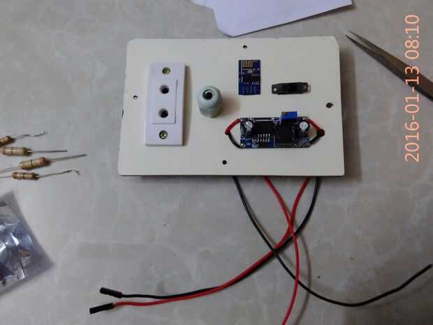 Aquí tira berg se suelda en la parte inferior para vcc y tierra, fuente para el tablero del Esp y el relé.