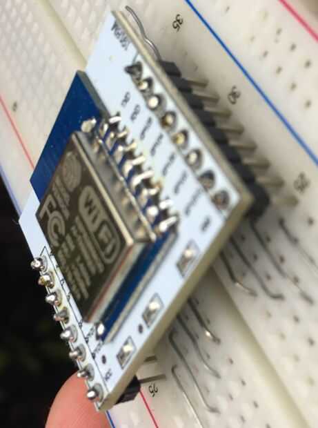 Monte el módulo de ESP en el protoboard, asegúrese de que los pernos "GND" y "VCC" terminan en la fila 25