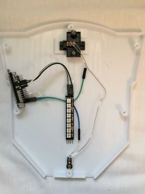 Has optado por simplicidad en este momento y ha arreglado el palillo de NeoPixel verticalmente en el centro. Las tres conexiones son GND, VCC y del estruendo. Deben conectarse a GND y 3, 3V en la Junta de desarrollo, mientras que el DIN debe ser conectado al pin de D6.