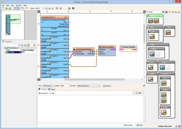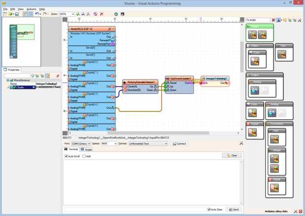 Los codificadores rotativos son sensores de rotación exacto muy útiles, también de uso frecuente como usuario control dispositivos de entrada en lugar de potenciómetros. Son fáciles de conectar al Arduino, y con la ayuda de Visuino - un ambiente de d