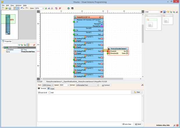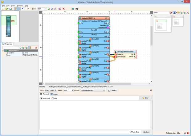 Los codificadores rotativos son sensores de rotación exacto muy útiles, también de uso frecuente como usuario control dispositivos de entrada en lugar de potenciómetros. Son fáciles de conectar al Arduino, y con la ayuda de Visuino - un ambiente de d