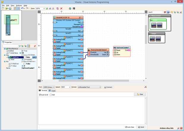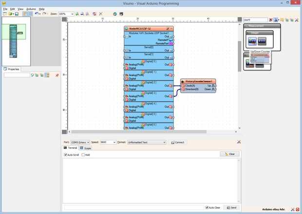 Los codificadores rotativos son sensores de rotación exacto muy útiles, también de uso frecuente como usuario control dispositivos de entrada en lugar de potenciómetros. Son fáciles de conectar al Arduino, y con la ayuda de Visuino - un ambiente de d