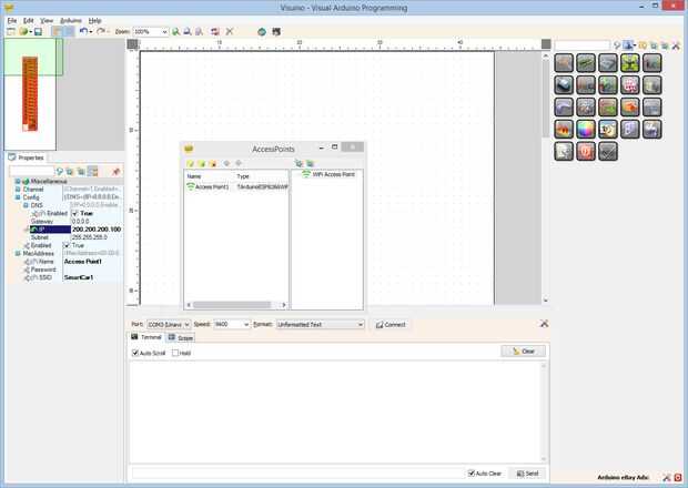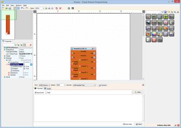 - Haga clic en el botón "herramientas" en el componente de Arduino y cuando aparezca el cuadro de diálogo, seleccione "NodeMCU ESP-12" como lo hizo en el paso 8 para el módulo Smart coche