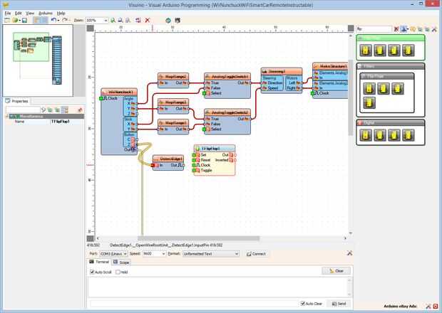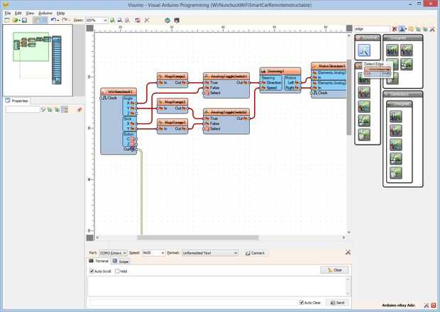 - Conectar la clavija de la "Z" del grupo "botón" del componente WiiNunchuck1 en el "en" pin de la detecciónEdge1 (foto 3)