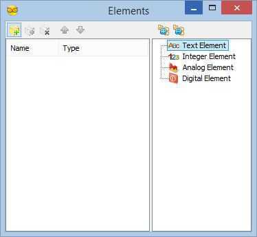 3. En el editor de elementos , seleccione el Elemento de texto en la derecha y clickon el "+" botón a la izquierda para agregar a uno de ellos (cuadro 3 y 4)