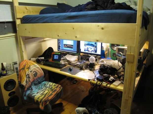 Este combo de cama/escritorio Reina tamaño loft me da lo que de otro modo sería un impractially enorme (2.2 m largo por 1 m) escritorio en espacio que de lo contrario sería asolada por una cama normal. Es lo suficientemente grande como para que puedo usar la mitad izquierda de mi ordenador y la mitad derecha de un banco de trabajo de electrónica y hobby.