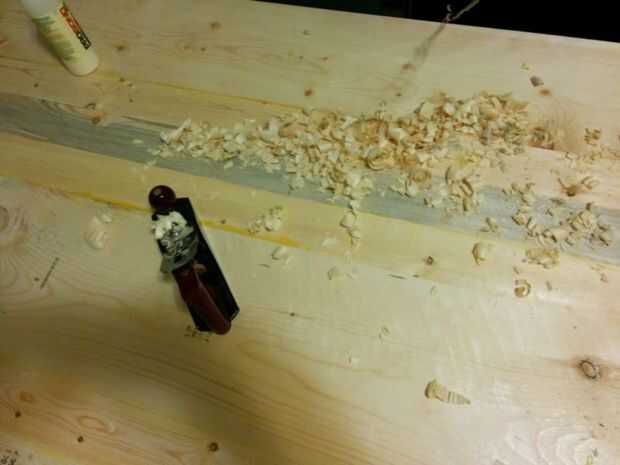Hice una tapa de madera maciza laminar un montón de tableros juntos a borde, y luego cepillar todo liso. Los resultados son buenos, pero es una cantidad enorme de trabajo. Si desea una alternativa mucho más fácil, utilice madera contrachapada. Usted desea apoyo para no caer en el medio (2.2 m es muy larga), o podría esparcir pegamento, y losa de 2 hojas de laminado de 3/4" a 1.5" Si prefieres el método de fuerza bruta overkill. (Ya sé que hacer!) A continuación, hacer algo para roundover los bordes, especialmente si la está usando como un escritorio de la computadora, por lo que las esquinas agudas no excavan en las muñecas.