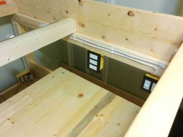 Era obvio que iba a tener que añadir algunos iluminación sobre este escritorio, ya que la cama le bloqueo la luz desde arriba. Decidí que en lugar de lámparas de escritorio, construyo en algunas luminarias para bombillas de luz LED.