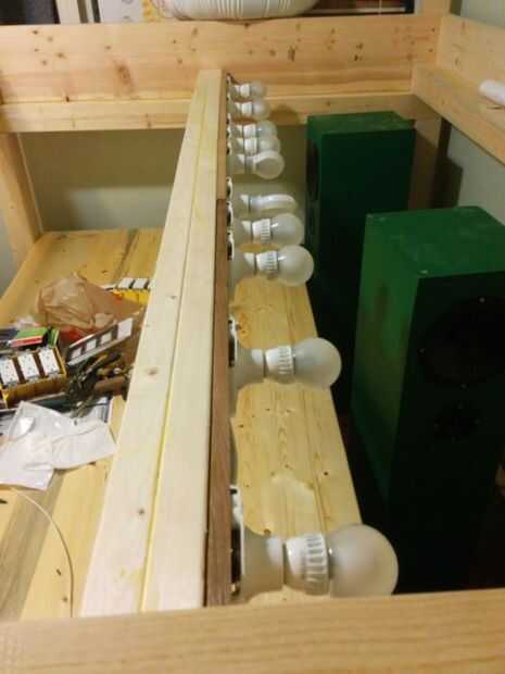 Cableado los leds de atenuador (hice 2, una cadena de bombillas de luz del día, uno de blanco cálido) no es super eficiente, dado que mucha de la luz es bloqueada por la colocación de mis monitores, pero son bombillas LED y generalmente no necesita una gran cantidad de luz en mi escritorio cuando estoy usando la computadora de todos modos. Donde los tengo montados en la parte posterior de la viga de centro, no brillo en mis ojos