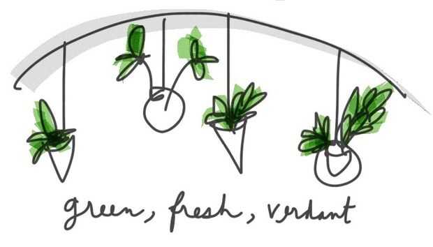 Las plantas son útiles para crear una luz y un ambiente acogedor. Hicimos un jardín de cadena y una pared verde en dos paredes diferentes de nuestro interior.