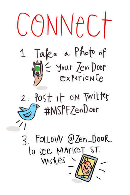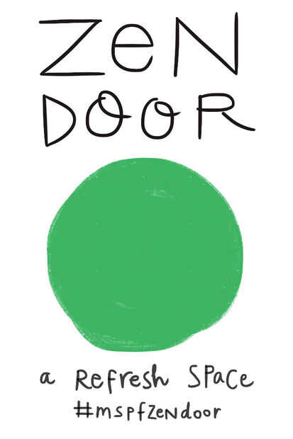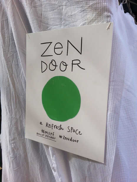 Hacer un gran cartel para imprimir como un cartel, para colocar fuera de su espacio ritual que indica a los transeúntes que deben parar y ver lo que está sucediendo. No debe explicar demasiado, por lo que hay cierto misterio sobre lo que está dentro de la estructura. Debe transmitir un estado de ánimo y el tono de relajación.