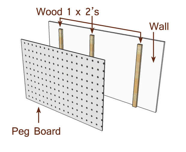 - El tablero de clavija debe sentarse lejos de la pared para que los ganchos se pueden deslizar en. Es donde entra la 1 x 2.