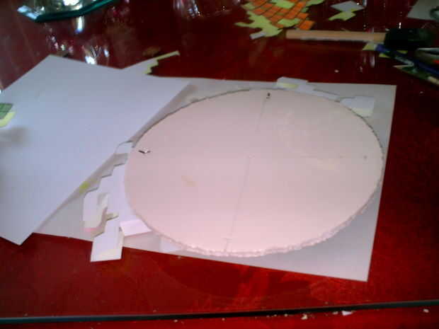 Con clavitos pequeños, une a los extranjeros a la rueda. La idea era que los extranjeros permanecerá verticales como el disco girado.  Es muy importante que la rueda sea equilibrado que la rueda gira muy fácilmente.  Si tuviera que hacer este proyecto una vez más, me renunciar con clavitos y simplemente pegar a los extranjeros a la rueda.  < br >< img src = "http://farm6.static.flickr.com/5305/5583408610_29a1918dfa.jpg" width = "500" height = "375" alt = "PICT0052" >< br >