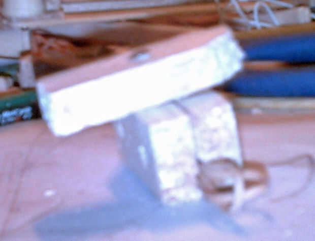 En la parte inferior de la diapositiva, debe colocarse un bloque de madera que se captura en el mecanismo del gatillo. El back-end se corta en un ángulo para que cuando la persona se retrae, la diapositiva pasa el gatillo, que captura.  El frontal es plano a la prensa en el retén de disparadores.  El espesor y la ubicación de este bloque respecto a la posición activa es fundamental.  Si el bloque es demasiado bajo, no será capaz de pasar por el seguro del gatillo o no podrá empujar el gatillo para liberar la corredera.  Demasiado alto y no coger en el gatillo.  También habrá una presión considerable en una pequeña sección de este bloque de la tensión de las bandas de goma.  El bloque debe capturar en el seguro del gatillo sin saltar sobre él.  También, una vez que la sección de la diapositiva se une a la pistola, será difícil o imposible corregir los errores.