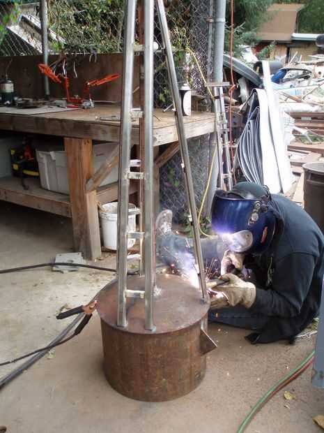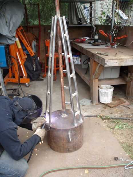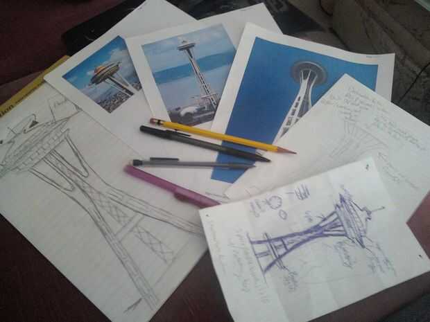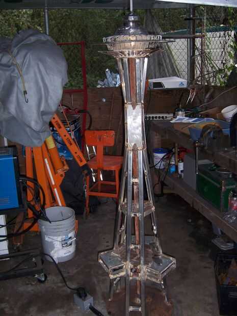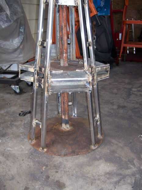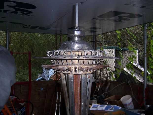 Una gran mayoría de esto fue hecha de partes reales de la aguja del espacio. Sería más fácil decirte lo que no es de la aguja del espacio. El disco inferior es de un arado de la finca, y la parte superior se hace de cerca de 20 piezas. Los tornillos poco son representar a personas mirando. El top spin también! Por favor permítanme saber lo que piensas.