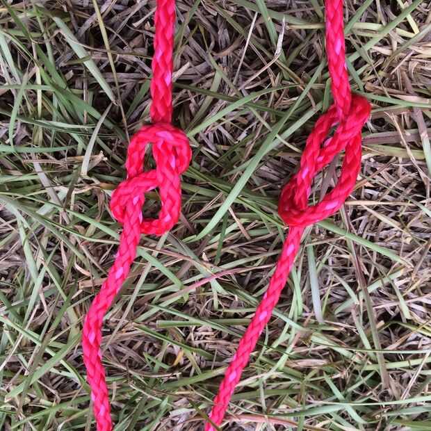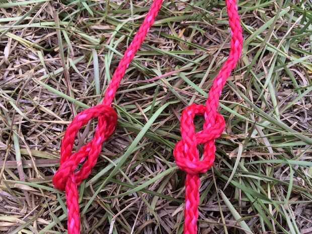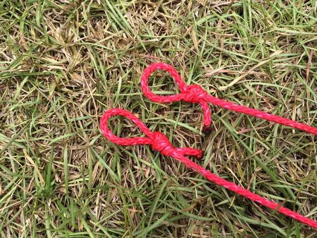 Fije al perno de ojo con una figura 8 seguimiento a través del nudo. Puede haber nudos mejor utilizar pero como este ya que es fuerte y fácil de recordar. Haga un nudo de lazo en el otro extremo para sujetar la cuerda del amortiguador auxiliar.