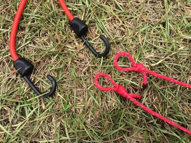 Longitudes de corte de cualquier tipo if cuerda te utilizan. Utilicé cable de poly, trenza de diamante que es color rojo brillante para la visibilidad.