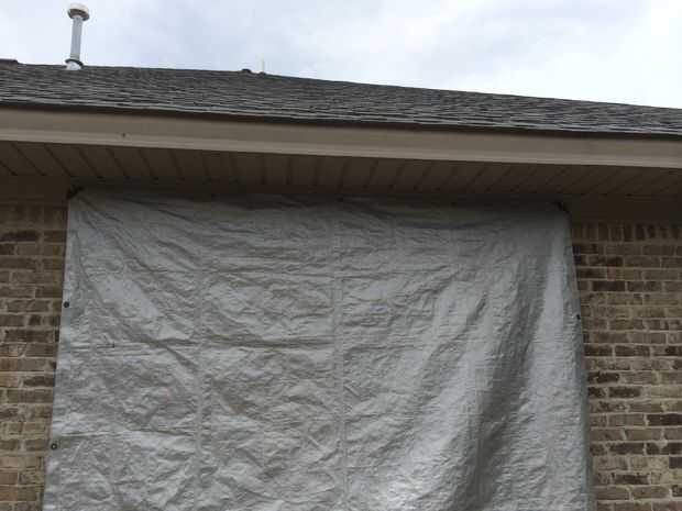 Lona de gancho en su lugar. Son en línea para cada esquina y el ojal del centro.