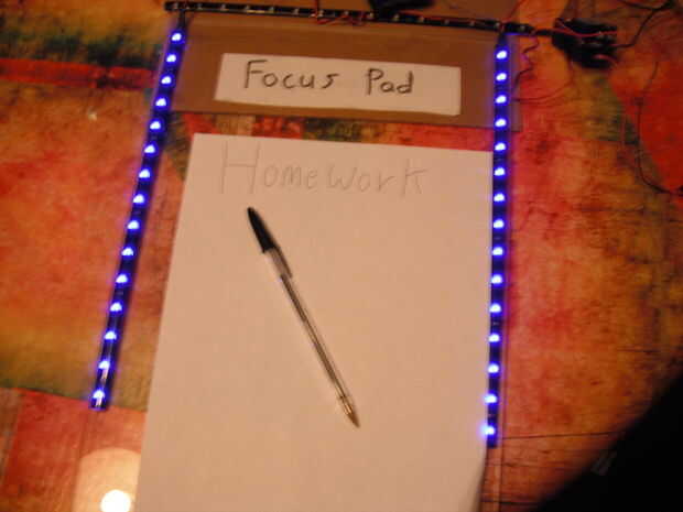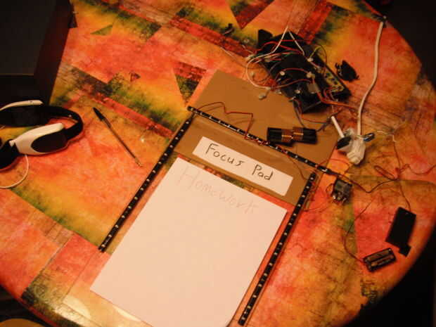 La forma en que funciona es que el individuo lleva la diadema de un Mattel Mindflex para medir la cantidad de enfoque que mantienen. El individuo entonces coloca un portapapeles enmarcado por 2 tiras de led intenso en su tarea. Entonces cada vez que él o ella pierde el foco las luces destellarán, inmediatamente redireccionar la atención del individuo hacia la tarea. Este sirve para no solo informa al individuo de su pérdida de enfoque, pero también instintivamente redirigir su enfoque a su tarea original, lo que permite más eficiente del trabajo.