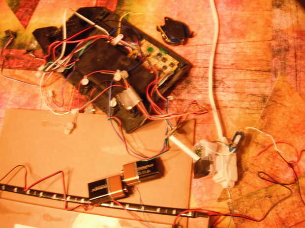 Para la construcción solo coloca un extremo del tubo de papel de la luz de indicador de foco rojo en el mindflex, luego coloca la fotocélula de luz de noche en el otro extremo. Luego había conectado dos cables a las luces de noche led cables y había conectado a mi relé de láminas. Luego colocar el relé reed en un circuito con las pilas AA 4 enganchadas a mi relé más grande, para que cuando la luz se enciende la noche abrirá la caña y posteriormente abrir el segundo relais. A continuación conectado 9 voltios junto a los dos led tiras y coloca mi relés más grandes en ese circuito, por lo que cuando se abre, las tiras led se encienda. Así que cuando todo acabado, lo que pasa es siempre y cuando la luz roja en el tubo de papel con la fotocélula de luz la noche está en (porque están enfocados), la franja de luces permanecen apagadas. Sin embargo una vez que la luz roja se enciende y la luz detecta la oscuridad en el tubo, se enciende su luz. Entonces se abrirá el relé de láminas que se abrirá el relé más grande, que abre el circuito de luces de tira y les enciende. Para utilizar, simplemente póngase los microcascos mindflex, encienda el mindflex y conecte la luz de la noche y empezar a trabajar!
