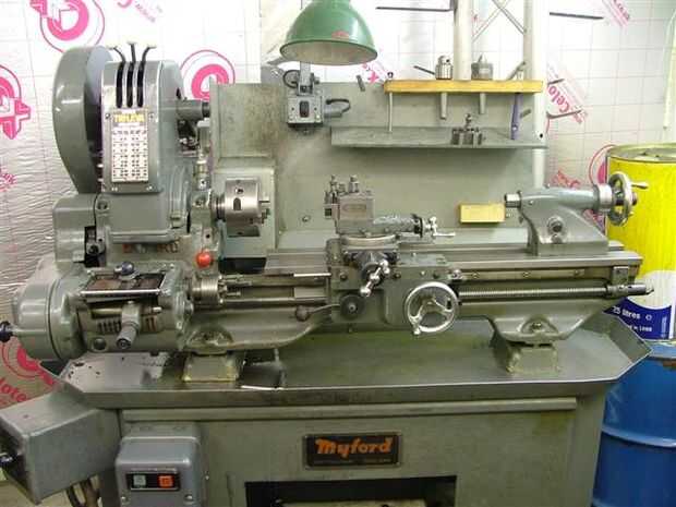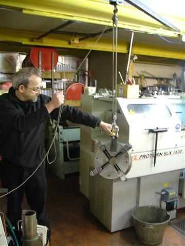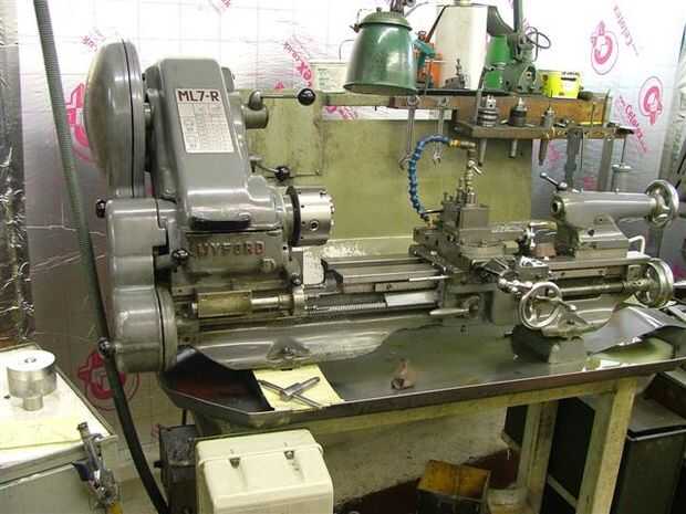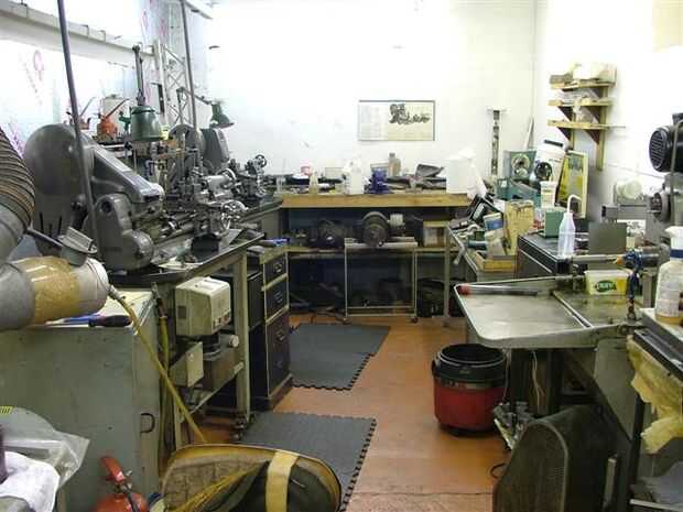 Hacemos nuestras propia de las partes mecánicas de los instrumentos. Eso significa que necesitamos una tienda de máquina servicio completo a nuestra disposición. Aquí está. Empezamos con los tornos.