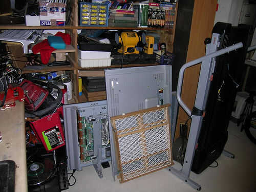 Me encanta la carpintería y la construcción de cosas al azar para resolver problemas y molestias alrededor de la casa. Mi problema es que mi garaje está repleta de estantes abiertos y equipo de ejercicio costoso y yo no podemos tener serrín por todo
