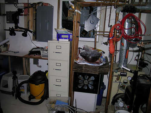 tengo espacio en el porche y en la cochera donde trabajo a veces pero la mayoría de mis proyectos se crea en la "sala de calderas".