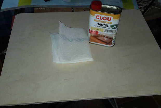Puesto que el aceite necesita unas horas para secar, recomiendo comenzar con la preparación de la superficie de trabajo eventual.