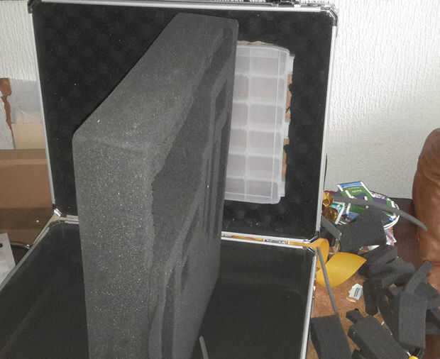 Mida la altura interior de la maleta y restar el diámetro de la placa y la estera de la espuma que se agregará en el paso siguiente.