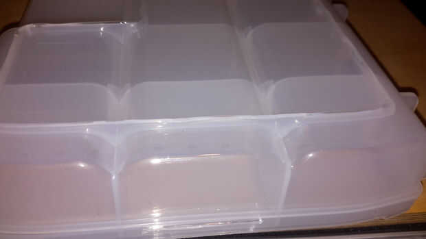 Para integrar una especie de sitio de almacenaje para piezas pequeñas (aditamentos dremel, fuentes pequeñas, etc..) Decidí agregar una caja precompilada de la ferretería - barato, bastante estable y fácil de colocar.