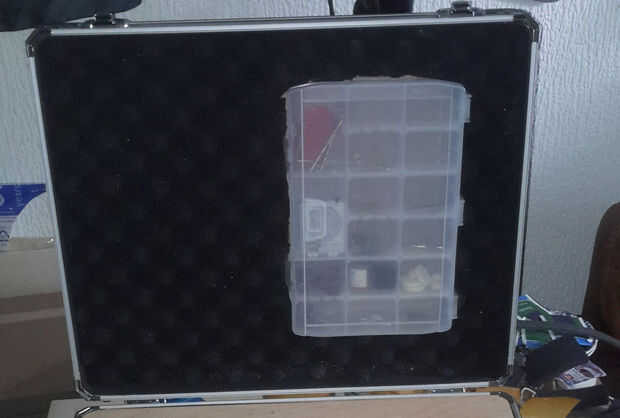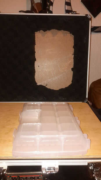 Como veis, tuve que cortar un poco de la espuma en la tapa para hacer espacio, pero esto depende ciertamente de la maleta usada. Simplemente use pegamento para fijar la caja a la tapa.