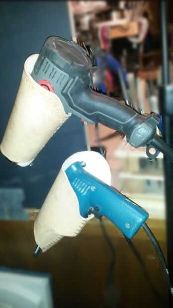 pistola de calor, que era fácil de usar y acceder. Utiliza cuero y me hicieron fundas.