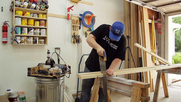 Como dije antes, era más barato para mí para tablas de 2 x 4 justo por la mitad, eso es lo que hice. Esto no es un proyecto de carpintería de alta gama "lo suficientemente cerca" es suficiente para determinar cuánto tiempo hacer las tablas de 2 x 2. Necesitaba un descanso en mis estanterías para el acceso a mi buhardilla sino si no tienes ninguna obstrucción puede hacer estos abarcan toda la pared. A la derecha de mi acceso ático puerta era apenas tímida de 12' que es más de lo que mi Serrucho estación puede manejar así que corte a la longitud con mi sierra de mano.