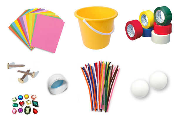 - 1 amarillo cubo que debe encajar perfectamente la cabeza de su hijo (de lo contrario usted debe cortar ojos y una boca agujeros más tarde)