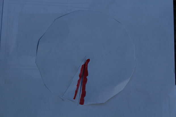 3) corte alrededor del círculo y en la parte blanca que se ve como un triángulo agudo. Corte sólo en la línea que dice corta tal ves rojo alineados uno