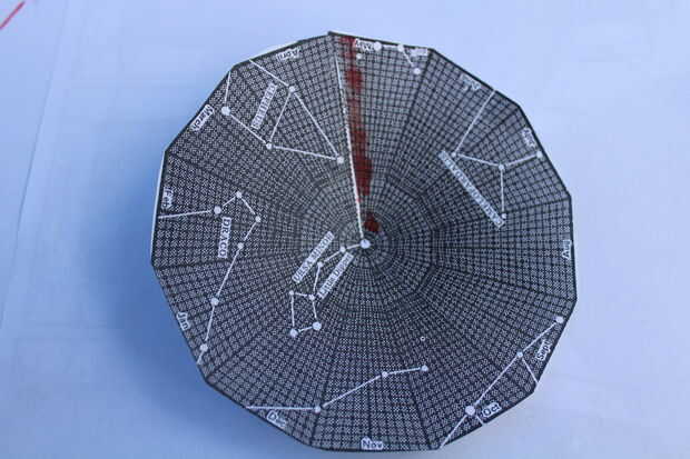 4) pegamento rojo derecha línea debajo de la izquierda así que usted conseguirá lo que parece un cono poco profundo (cuarto a la izquierda)