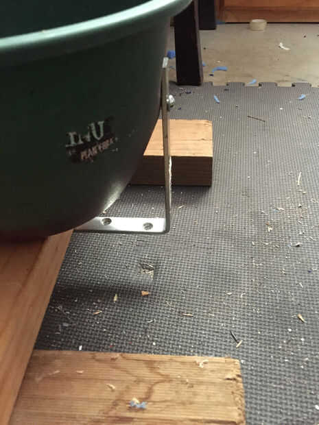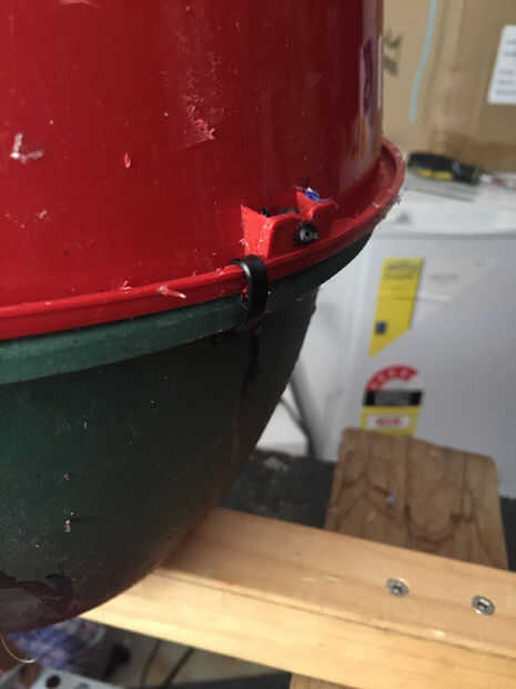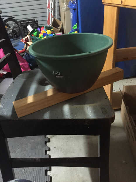 Para el cuerpo usé una planta en maceta y un cubo de plástico. Primero até los pies a la parte inferior de la planta en maceta, los pies eran dos pedazos de madera con un pedazo más largo junto a ellos. Taladré un agujero en la parte inferior de la planta en maceta y a mitad de camino en el bosque, fue a anclar la tubería de PVC que tenía la intención de ejecutar a través del cuerpo. Finalmente coloca un peso en la planta en maceta para que no caiga en los elementos y había unido a un soporte de metal para la fuerza adicional.