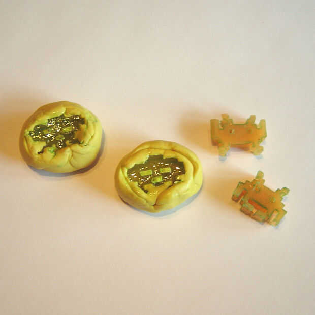 Tiré mis piezas antes de ser completamente endurecidos, que esto parece ser más fácil en los moldes. Coaxial del molde a través de los agujeros en su parte con un palillo de dientes para reducir la tensión del molde.