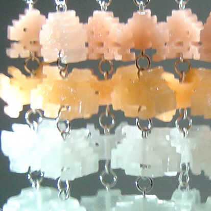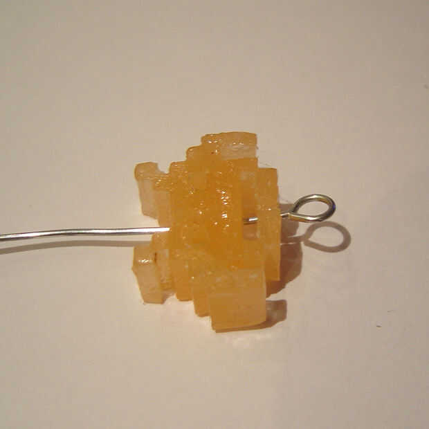 Deslice cada una (excepto la fila inferior) en alambre artesanal. Hacer un lazo del alambre, deslice la pieza hacia abajo, cortar (aproximadamente 3/8") y hacer un bucle en ello. Con unos alicates redondos de la nariz facilita esto. Esto convierte a cada uno en un encanto. Use un alfiler de cabeza por el encanto de la parte inferior por lo que ningún lazo en la parte inferior.
