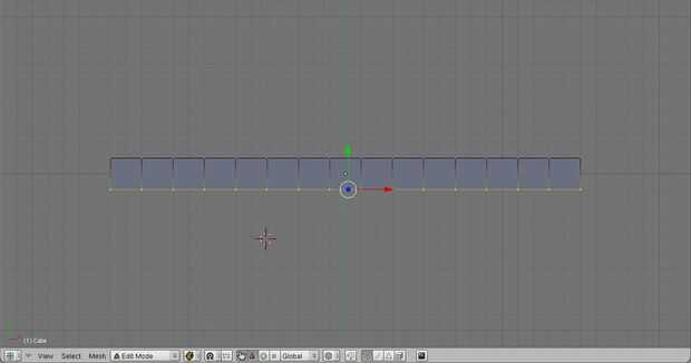 Seleccione en el lado izquierdo del cubo original. Sacar de la misma manera hasta que tenga una barra de ancho 15 plazas. Deseleccione todo.