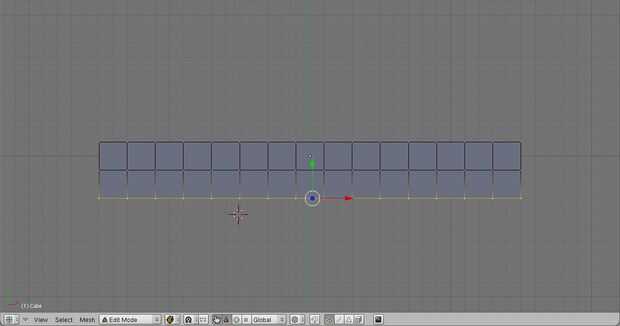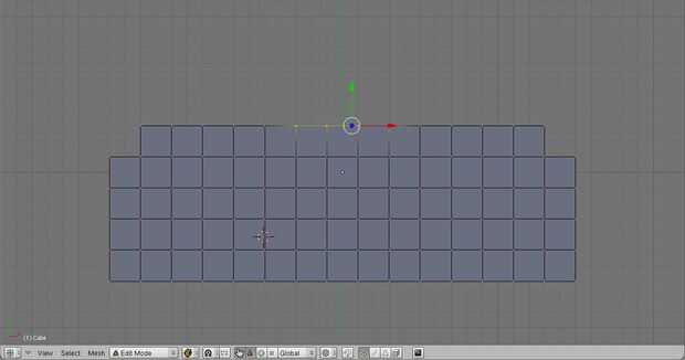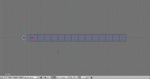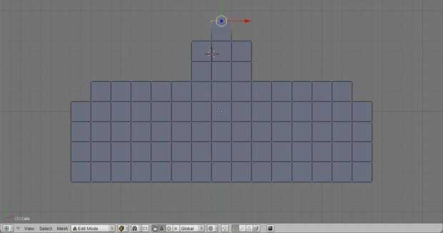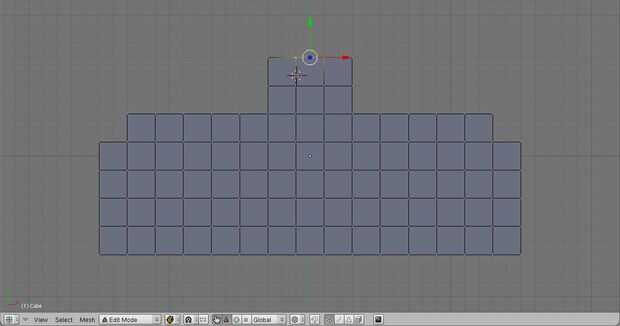 Frontera de uso select para seleccionar el panel lateral derecho del cubo. Sacar al derecha un segmento en la cuadrícula presionando la tecla 'e' arrastrando el ratón a la derecha y haga clic en cuando está en posición. Repetir esto hasta que tenga una amplia plazas de objeto 8. Que tenga que alejar para que quepa todo en la pantalla. Deseleccione todo.