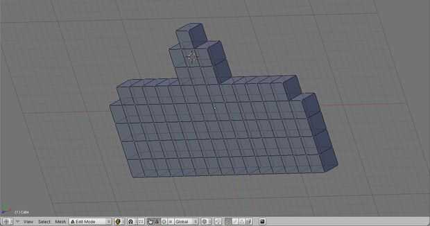 Otra vez con el borde, seleccione, seleccione el fondo entero del objeto. Saca todo por una plaza. Repita esto hasta que su objeto es alto cuatro cuadras. Deseleccione todo.