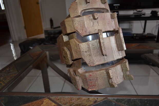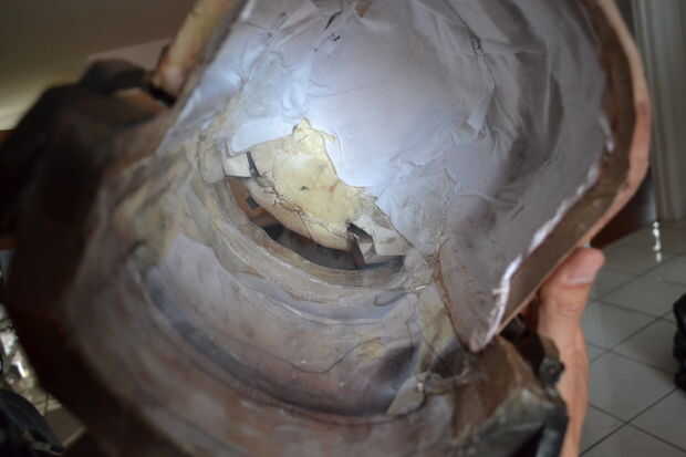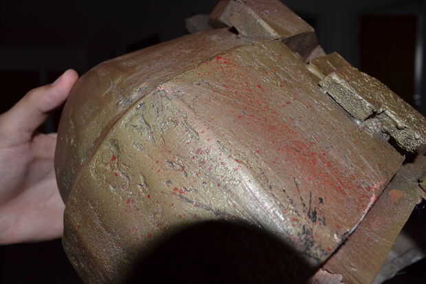 Entonces primered el casco nuevo, lija un poco más y finalmente pintado con la pintura oro óxida.