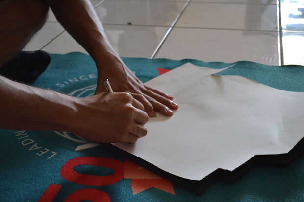 La armadura de placas fueron hecha de espuma y esta espuma completamos la mochila, las costillas frontales, la pechera, apretones de brazo y guantelete.