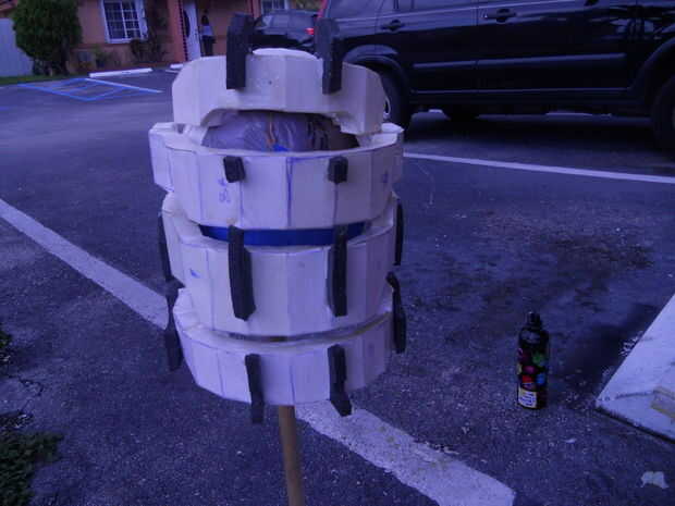esto es un apoyo de lo cortador del plasma del juego Dead Space 2. No es una réplica exacta, pero es reconocible. I construcción de tablero de la espuma y pintado para parecerse a metal rayado, abollado. Tengo pensado colgar en mi pared junto a mi es