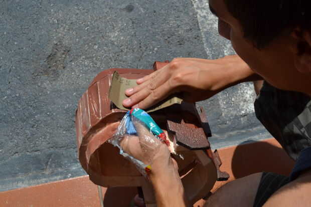 Tomar el papel de lija (preferiblemente áspero) y lijar todas las imperfecciones y hacerla más elegante.