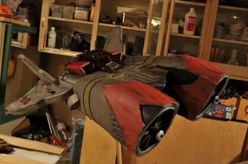 Puedes ver que he aerosol pintado el frente de las turbinas con pintura un poco de plata. He cepillado en plata de la pintura en los escapes y había añadido algunos bloques de espuma a ellos. El resto de la nave está siendo pintado con pintura acrílica de la artstore.