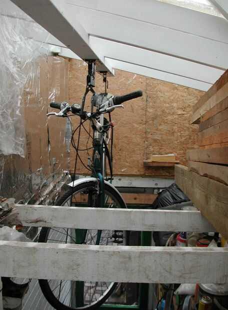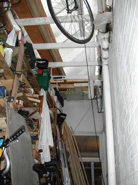 Las vigas horizontales están en espera de eliminación aunque sirven como almacén para mi la madera como se puede ver.