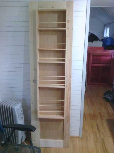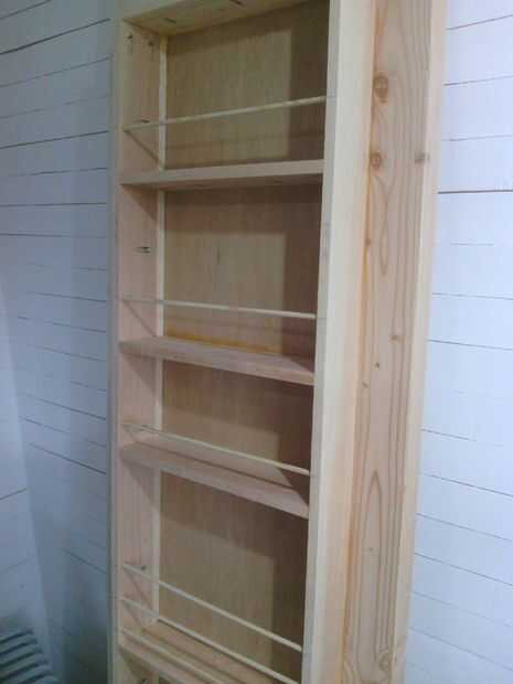Después de la colocación seca con tornillos, decidí agregar algunos carriles como partes posterioras en el armario. Para esto perforado 1/4" agujeros en las juntas verticales para sujetar espigas de 1/4". Finalmente, pegado y había atornillado todo juntos. Para esto no molesta grabar las juntas de pegamento apagado porque más tarde será pintado y no manchado. La madera común era sólo eso común. No estaba buscando en especial y no tener mancha bien para que pintura hará que se vea mejor.